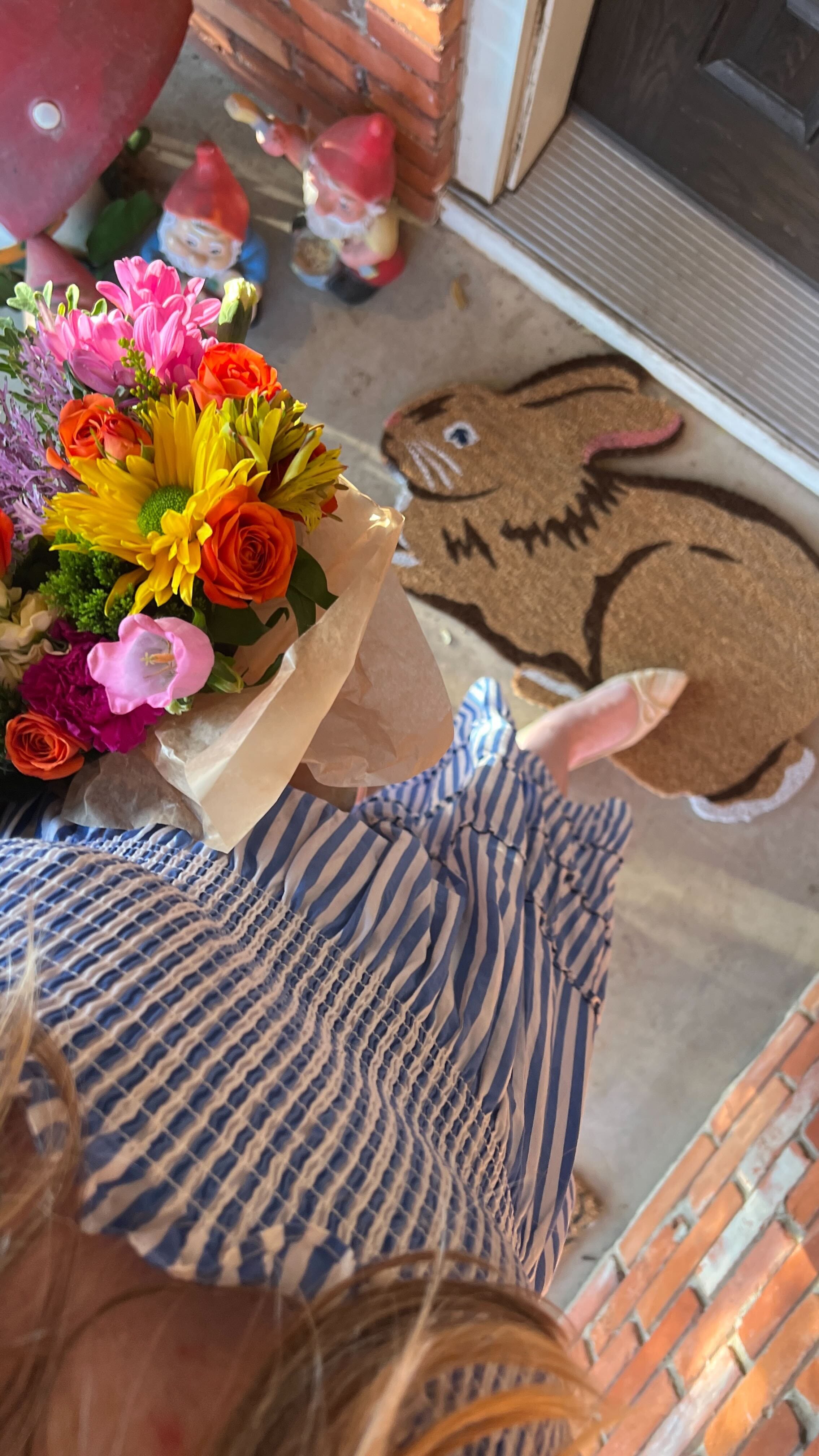 To be honest, most of my splurges are before the basket. I admit to being an all-out cabbage leaf lover, and find these nesting bowls to look far more sophisticated than their price, and the bunny under this little $12 dish is too cute, paired so well with this all white bunny cake tray. Just add pops of spring cutesy all over the house with these paper bunny eggs for your Easter Tree or some paper tulips on the front console. A paper cracker at every plate is mandatory at all of our meals, and I love both these bunny and floral options. I’d lay one each on these sweet bunny plates and try to get these bunny cheese knives as close to that as possible. Of course, it all starts with the doormat!